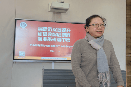 时光淬炼耕耘,奋斗书写答卷。2026年1月22日,呼市一中初中部初三年级备课组长盘点会如期召开,旨在教研中碰撞智慧,在备考中锚定方向。呼和浩特市第一中学初中部校长张浩韫,年级组长王俊海、副组长孟悦,以及各部门环节干部参会。教务主任孙春丽主持会议,7位备课组长进行盘点汇报。